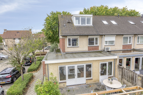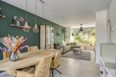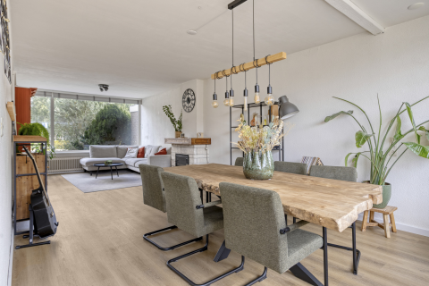 Aan de achterzijde is de woning uitgebouwd, waardoor een royale zithoek is ontstaan. Dankzij het zijraam en de grote ramen aan de achterzijde komt er veel daglicht binnen. Via de dubbele openslaande tuindeuren loop je zo de tuin in – het buitenleven is hier altijd dichtbij.